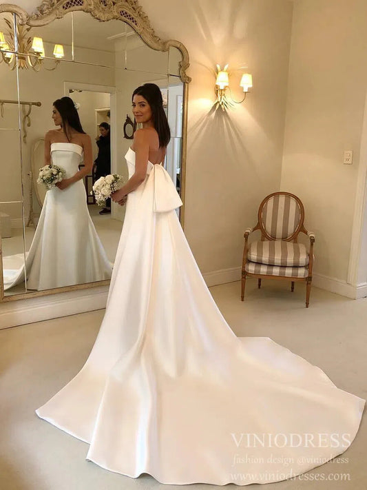 Simple Minimalist Wedding Dresses with Train Strapless Satin Bridal Gown VW1540