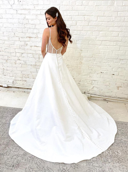 Simple Spaghetti Strap Satin Wedding Dresses Low Back VW1846