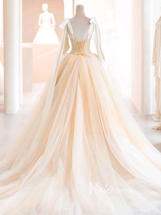 Champagne Tulle Prom Dresses Spaghetti Strap Formal Gown FD3432