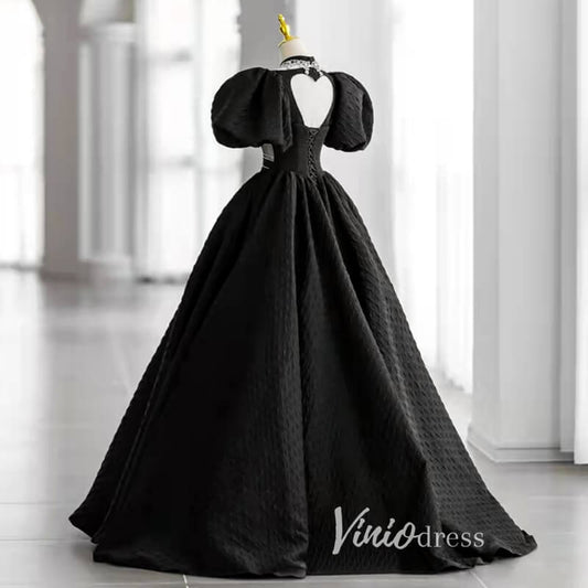 Black Satin Quinceanera Dresses Puffed Sleeve Prom Ball Gown FD3243
