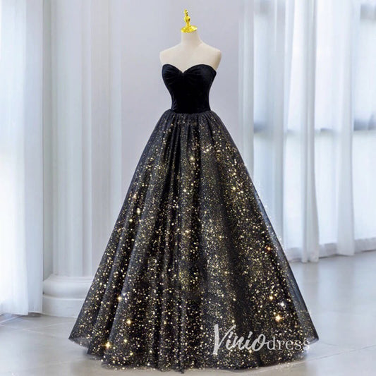 Black Sparkly Tulle Prom Dresses Off the Shoulder Formal Gown FD3241