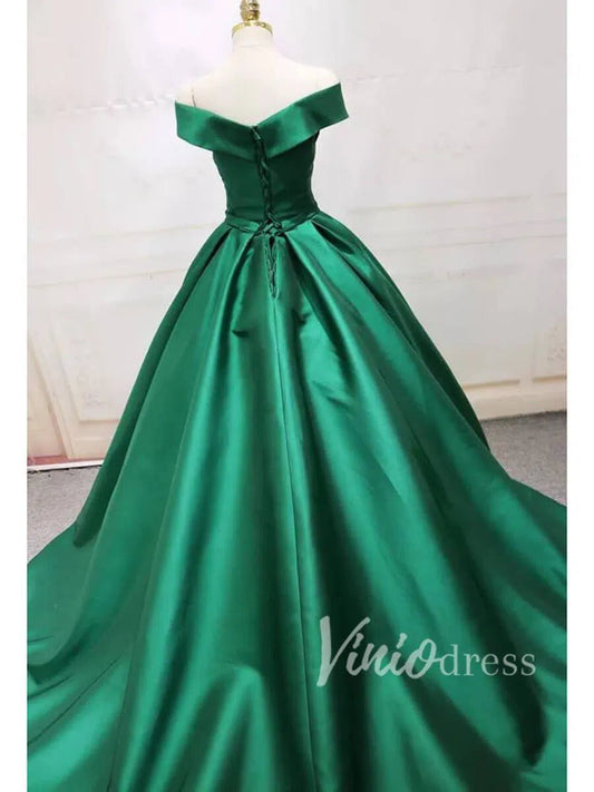 Emerald Green Satin Mermaid Prom Dress with Spaghetti Straps, Lace-Up Back – SS017