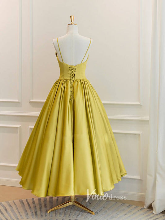 Golden Yellow Satin Prom Dresses Tea-Length Short Formal Dress FD3179