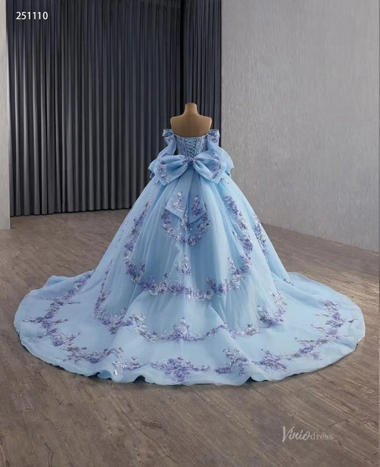 Light Blue Lace Quinceañera Dress with Removable Sleeves | Off the Shoulder Debut Ball Gown 251110