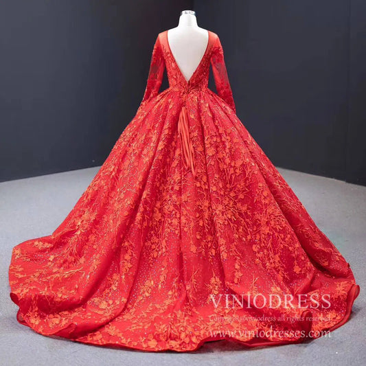 Long Sleeve Red Wedding Dresses Ball Gown Bridal Dress VW1274