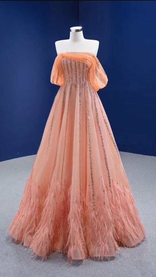 Off the Shoulder Peach Prom Dress 2022 A-line 67393 viniodress
