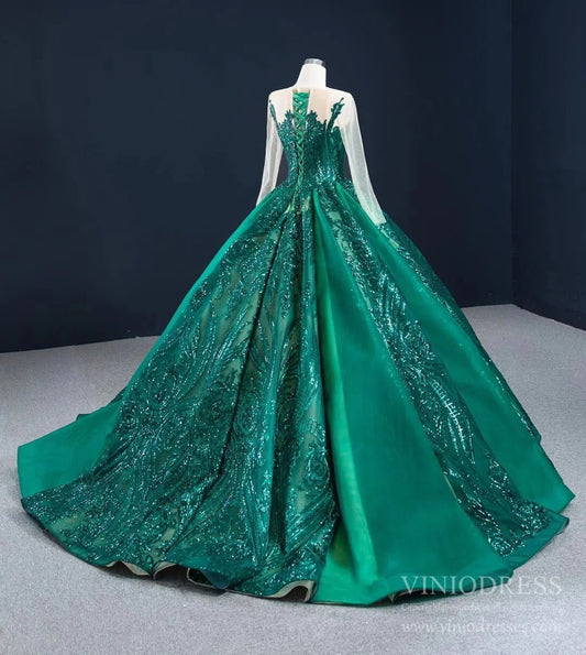 Emerald Green Quince Dress Long Sleeve Princess Ball Gown FD2454 viniodress