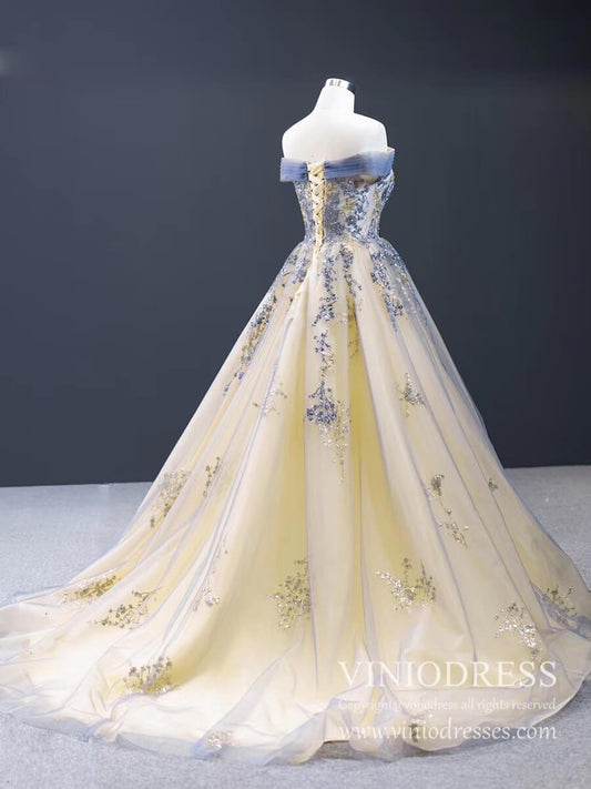 Champagne Long Prom Dresses Off the Shoulder Ball Gown 66957 Viniodress