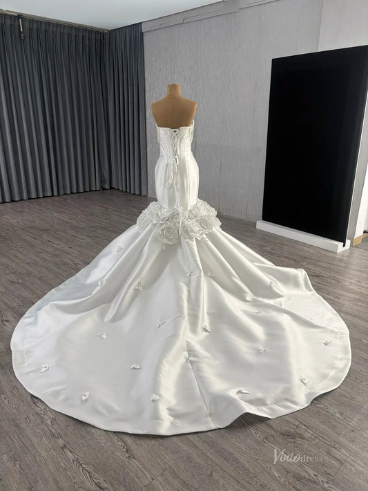Strapless Mermaid Wedding Dresses Beaded Trumpet Bridal Gown Corset Back 241061