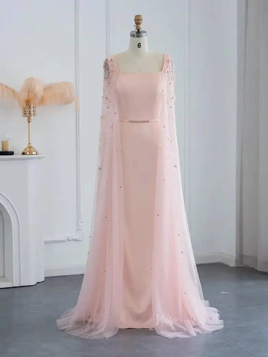 Pink Floral Prom Dresses Beaded Cape Sleeves Square Neck Sheath Formal Dresses 20084