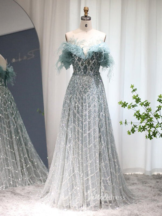 Shimmer Beaded Lace Prom Dresses Off the Shoulder Evening Dress 20082