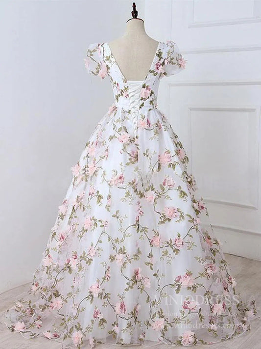 3D Floral Prom Dresses for Teens V-neck Flower Blossom Ball Gowns FD1685