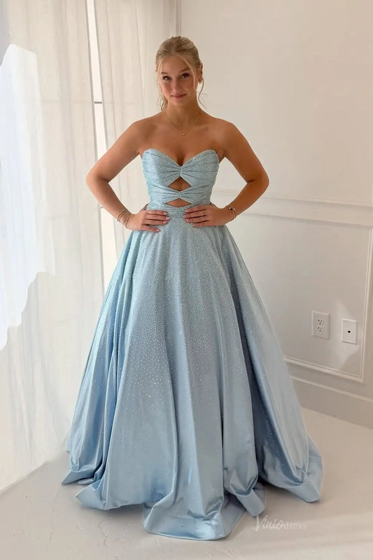 <transcy>Alto bajo azul real con cuentas vestidos de baile vestido formal sin tirantes FD1589</transcy>