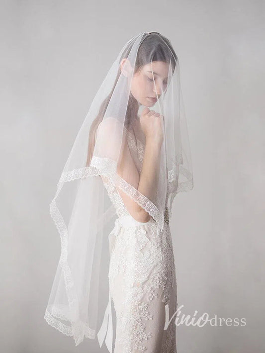 Velo de novia de encaje de 2 niveles Viniodress TS17148