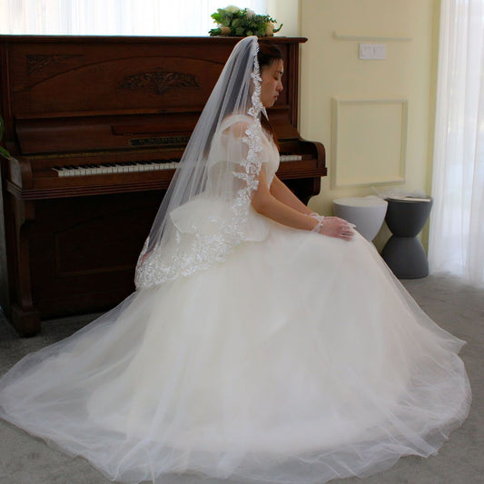 <transcy>Velos de novia de tul marfil con dobladillo de encaje ACC1051</transcy>