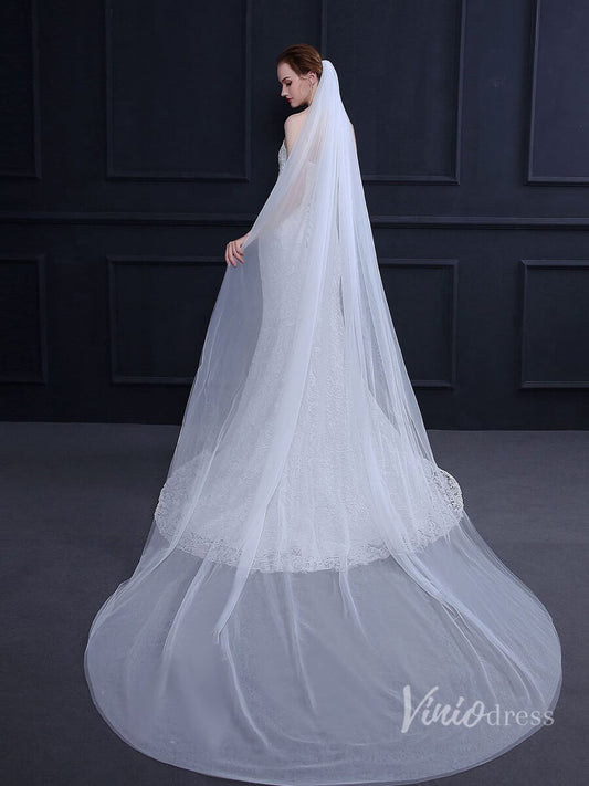 Viniodress de velo catedral de tul de 1 nivel con apliques de encaje brillante