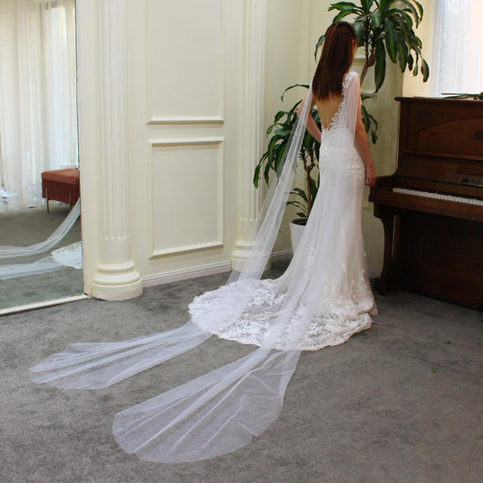 <transcy>Velo catedral nupcial de tul marfil simple AC1241</transcy>