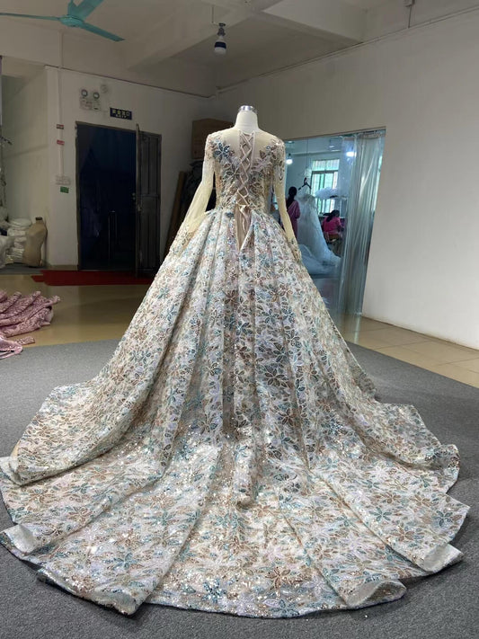 <transcy>Vestidos de fiesta florales de manga larga Vestido de fiesta brillante Vestido de quinceañera FD2436</transcy>