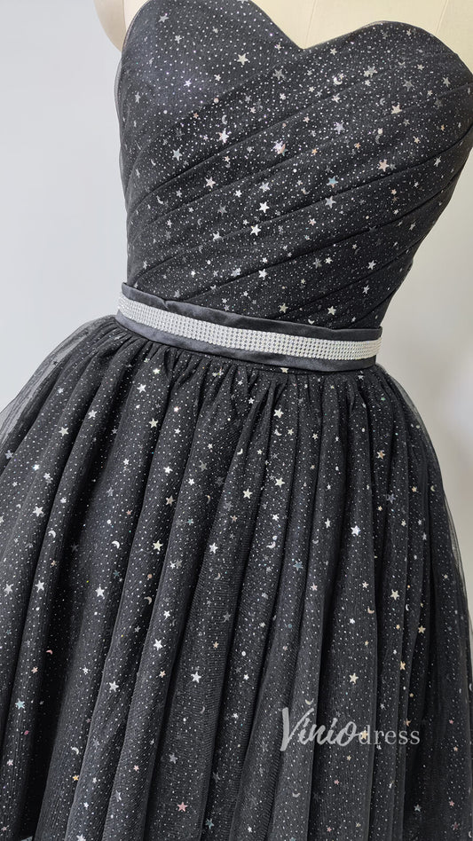 <transcy>Vestidos de fiesta negros brillantes sin tirantes Vestido de cóctel SD1220</transcy>