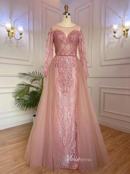 <transcy>Vestidos de fiesta de manga larga Dusty Rose Vestido de fiesta de compromiso bordado FD1654</transcy>