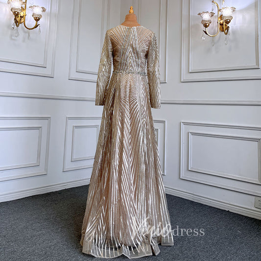 Vestido de noche de manga larga con cuello alto y cuentas grises FD2502