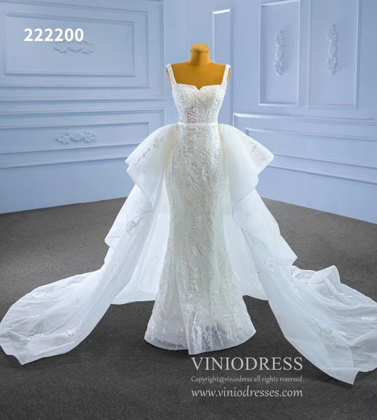Vestidos de novia de encaje sirena con sobrefalda extraíble 222200