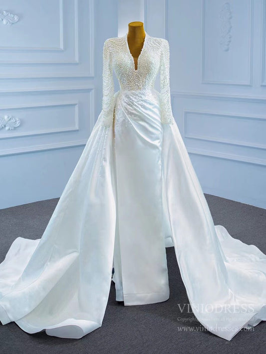 Vestidos de novia de perlas de lujo con mangas extraíbles VW2028
