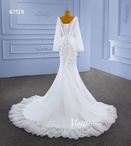 Vestidos de novia de sirena de manga larga abullonada vestido de novia moderno 67519