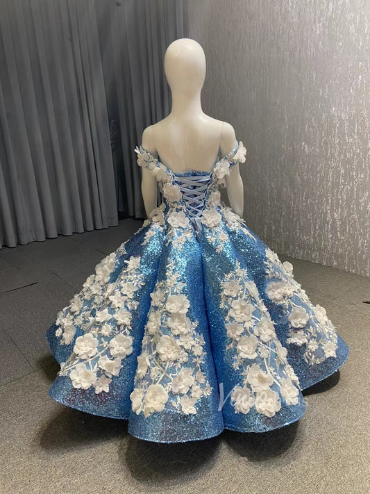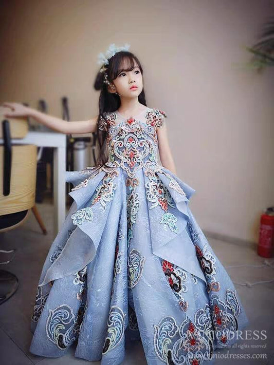 Vestido de fiesta azul polvoriento de alta costura para niños KD1031