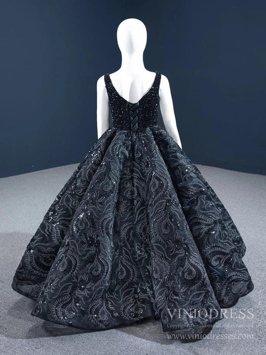 <transcy>Vestidos de fiesta para niñas pequeñas Vestido de desfile negro FD1126C</transcy>