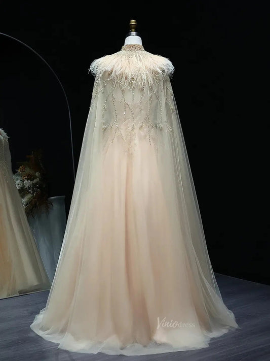 Vestidos de fiesta de sirena color champán con cuentas y manga de murciélago FD2469