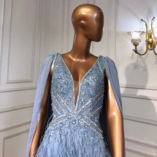 Vestidos de fiesta de tul azul polvoriento con cuentas Vestido formal con cuello en V 20041