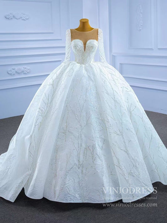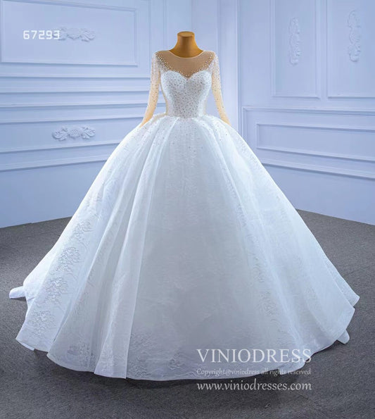 <transcy>Vestido de novia de encaje de manga larga con cuentas Vestido de princesa blanco 67293</transcy>