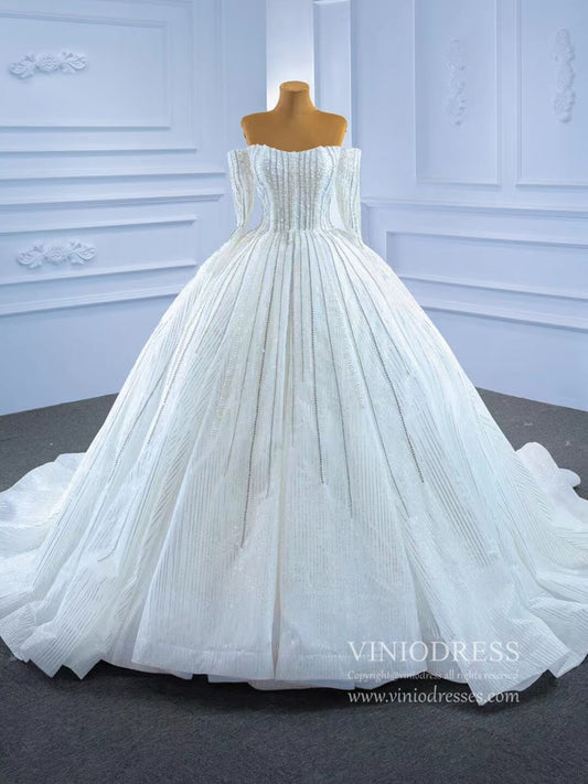 Vestido de novia de manga larga con hombros descubiertos y cuentas VW2036