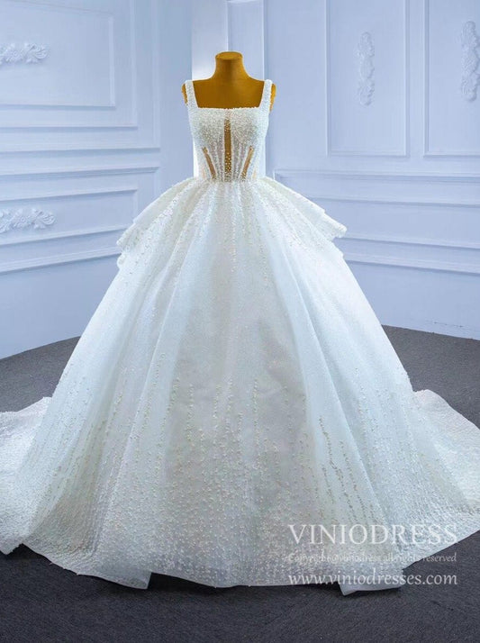 Vestidos de novia de perlas brillantes vintage Vestidos de fiesta con cuello cuadrado 67266