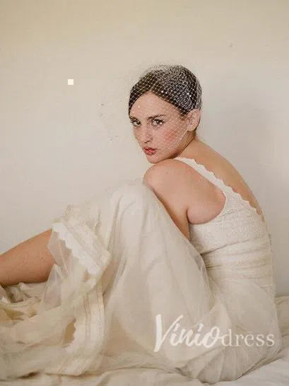 <transcy>Velos de novia vintage en forma de jaula de malla marfil con pequeños cristales ACC1086</transcy>