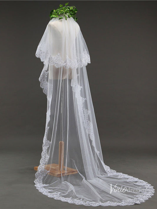 Vestido Vintage De Encaje Largo Mantilla Velo Vinio V860