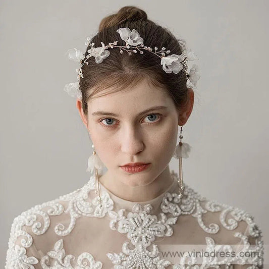 <transcy>Diadema de flores 3D con cristales, Pendientes colgantes de flores de marfil ACC1091</transcy>