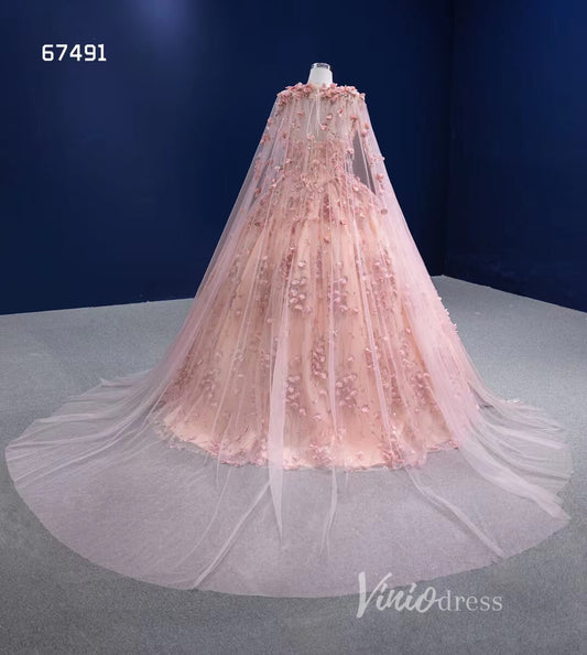 Vestido de fiesta vintage con capa, color rosa, flor 3D, dulce 16, 67491