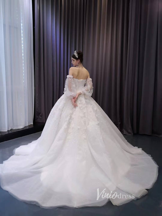 Vestidos de novia blancos florales 3D Vestido de novia de manga larga extraíble 231123