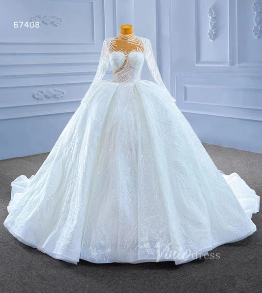 <transcy>Vestidos de novia de manga larga con cuentas color champán vestido de bola 2020 VW1533</transcy>