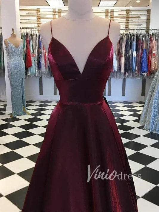 <transcy>Correa de espagueti Cuello en V Vestidos de fiesta simples Borgoña FD1408</transcy>