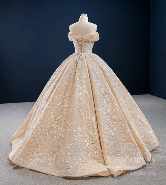 <transcy>Vestidos de quinceañera de champán brillante con hombros descubiertos Vestido de fiesta FD2432</transcy>