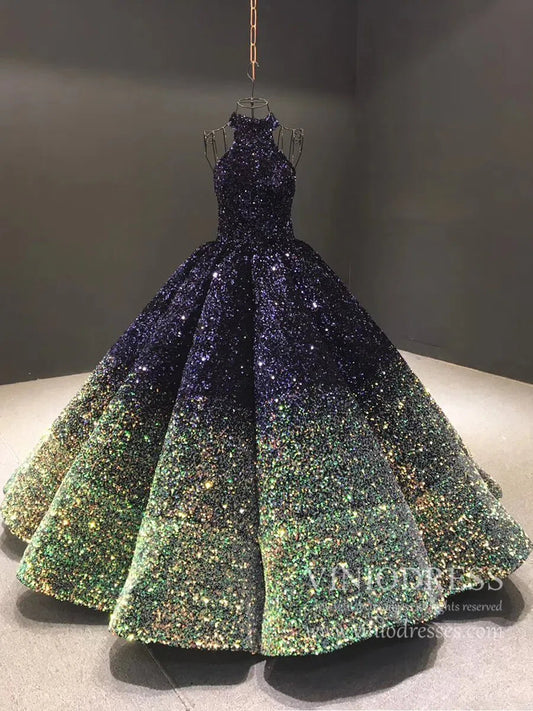 <transcy>Vestidos formales de lentejuelas con cuello halter Vestido de fiesta de talla grande Vestido de quinceañera FD1768H</transcy>