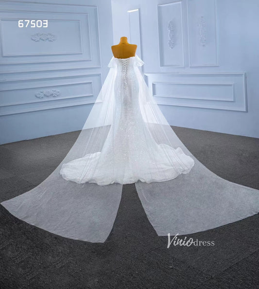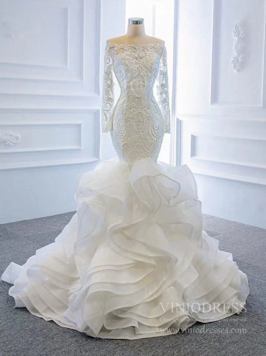 <transcy>Vestidos de novia sirena de manga larga con falda desmontable VW1765</transcy>