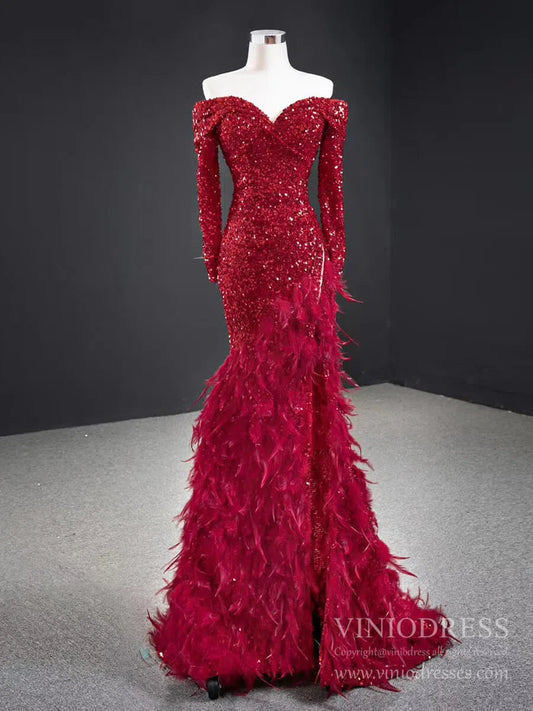 <transcy>Vestidos de fiesta de sirena burdeos vintage con mangas FD1200</transcy>