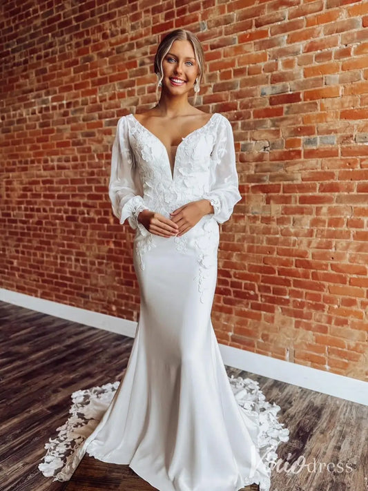 Vestidos de novia de sirena de manga larga abullonada vestido de novia moderno 67519