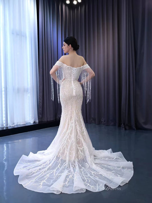 Vestidos de novia de perlas de sirena vestido de novia con hombros descubiertos 222114
