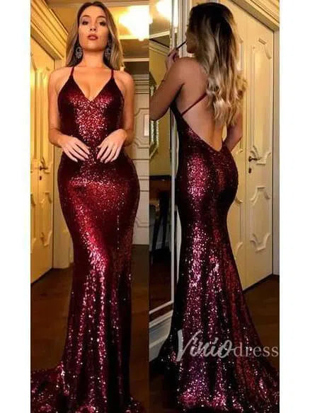 <transcy>Vestidos de fiesta de sirena de lentejuelas rojas brillantes con abertura FD1403</transcy>