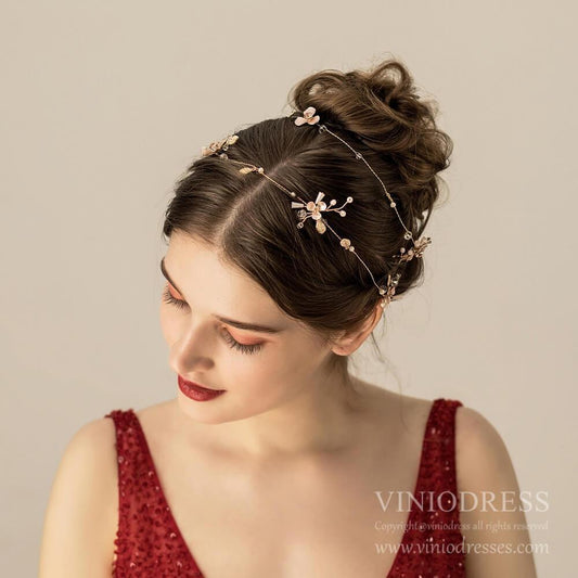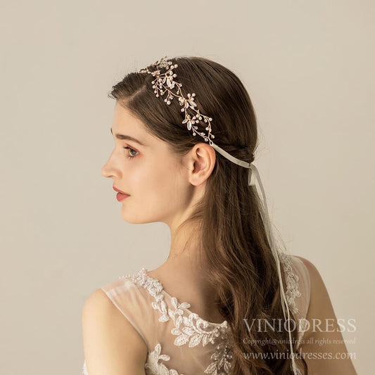 <transcy>Diadema nupcial de vides de pelo floral de oro rosa extralargo AC1219</transcy>